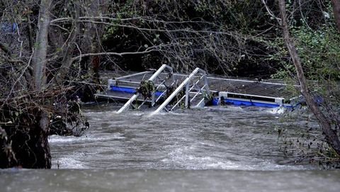 Los operarios municipales aguardarán ahora a que baje el nivel del río para tratar de recuperar la estructura del lugar en el que está varada y evaluar de los daños ocasionados.