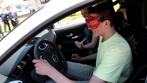 La mecánica de la prueba es muy simple. Los cuatro alumnos que participaron en la actividad (lo hicieron los mayores de dieciocho años y que están sacándose el carné, ante la mirada del resto de sus compañeros) recorrieron, primero sin gafas, un circuito con pruebas como un aparcamiento marcha atrás, un zigzag para esquivar a un peatón o atravesar una calle estrecha con coches aparcados a los lados. Si bien la primera vez sin las temidas gafas resultó fácil, la repetición bajo los efectos del alcohol tuvo resultados catastróficos. «No fueron capaces de hacer bien ninguna de las pruebas que tenía el circuito. Es que a alguno hasta le costó conseguir encender el vehículo», explica Pilar. El resultado: coches golpeados al intentar aparcar, peatones atropellados y vehículos rayados. Unos efectos que consiguieron asustar a los jóvenes.