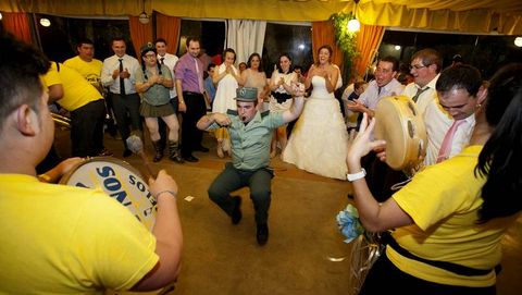 Entre el marisco y el pescado, en cuestión de segundos, la carpa se llenó de invitados disfrazados de bomberos que sujetaban una manguera enorme al ritmo de la canción Ahí viene el bombero. «Parecía un dragón chino», sonríe la joven, que confiesa que parte de los comensales no probaron bocado. «Todo el mundo estaba de pie porque cada diez minutos había algo». El momento estelar llegó cuando entraron en el salón nupcial un burro y un poni regalo de los amigos. Los animales portaban dos alforjas cargadas de dinero. «También nos trajeron un bote gigante lleno de miel con monedas dentro, y luego una cesta llena de flores hechas con billetes de cinco euros. Un pastón», relata la novia, que agradece «el apoyo y la entrega de todo el mundo». La boda acabó a las nueve de la mañana. «Eran las cuatro y no habíamos hecho ni el baile», finalizó.