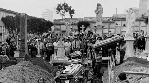 Tal vez por eso el drama se vivió en rápidos capítulos. Solo dos días después del siniestro aéreo los cuerpos de los no identificados fueron enterrados en unas exequias multitudinarias en San Amaro. Uno tras otro fueron depositados los féretros en una fosa común en el cementerio. Una familia entera de Cee, otra de Madrid... Cada caja se llevaba a la tierra coruñesa su particular drama.