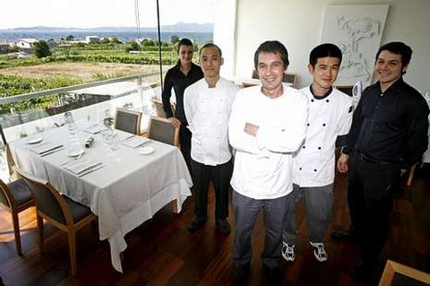 El equipo de Culler de Pau consiguió, este mismo año, la cuarta estrella Michelin de la historia culinaria de Arousa. El local, ubicado en la aldea grovense de Reboredo, domina una panorámica espectacular de la boca de la ría. De alguna forma, el símbolo de una cocina capaz de llevar un tiempo, el actual, y un lugar, la Galicia mariñeira, a la mesa. Al frente, Javier Olleres. A él sí le viene de casta. foto m. miser