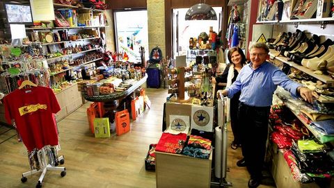 Entre la mercancía que despachan se mezclan los productos artesanos: tamancas, hórreos o platos de pulpo, con los que más demanda el cliente internacional. «A veces la gente no sabe muy bien a dónde llega. Desde luego, si son extranjeros lo que viene buscando son recuerdos de España, toros y muñecas flamencas».