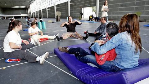 Durante toda la mañana, los alumnos se repartieron en grupos junto a sus monitores y fueron rotando hasta completar todo el circuito. «La idea es que puedan pasar por todas las actividades -señaló Carlos, de Black Box Project-. En la de Nico hay más interactuación, en la de David son más ejercicios de logopedia...». Señala que ya habían trabajado anteriormente con personas con síndrome de Down en Portugal, aunque en esta clase el alumnado incluye también a personas con parálisis cerebral y otros tipos de discapacidad. «Lo que queríamos es que se sintieran parte y actores principales de esta historia», añade Esteban. Los miembros del colectivo habían ido con anterioridad a los centros para conocerles «y que supieran lo que íbamos a hacer».