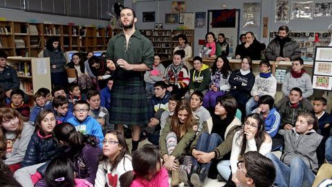 La primera lección del día la recibimos en el instituto de Valga. Allí encontramos a Ryan Mauister, un joven escocés que se ha venido a Galicia para ayudar a nuestros niños a aprender a hablar inglés con la fluidez necesaria en estos tiempos. Trabaja como auxiliar de conversación en este centro, en el que son especialistas en hacer que cualquiera se sienta como en casa. Ryan aprende cada día de nuestra cultura, de nuestra forma de vivir. Y ayer, quiso que sus alumnos se acercasen un poco a las tradiciones y particularidades de su verde Escocia. Coincidiendo con el día nacional de su país, apareció en el centro ataviado con la característica falda de cuadros. Tras darles una charla sobre las tradiciones escocesas, llegó el momento de poner la nota de sabor. Y Ryan sirvió postres y bebidas típicas de su país, como el pastel de jengibre, el de fruta, o el caramelo típico escocés. ¿Saben? Parece que a los chavales les encantó descubrir nuevos sabores.