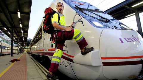 El montañero Sechu López que escaló en el 2012 el Annapurna, ochomil más alto del Himalaya, combina su pasión con su trabaja en Renfe como técnico electricista