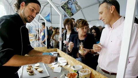 Lo cierto es que ayer, con el reloj acercándose a la una y media de la tarde, el ambiente en el recinto invitaba a quedarse. A pedir una buena tapa de mariscos -escojan ustedes entre las 31 especialidades la que prefieran: tienen hasta próximo domingo para pasar a probarlas- y dar cuenta de ella sin los agobios que se avecinan. Y es que, según explican los integrantes del servicio de limpieza, es entre la una y media y las tres y media de la tarde cuando las carpas se abarrotan de gente hambrienta.