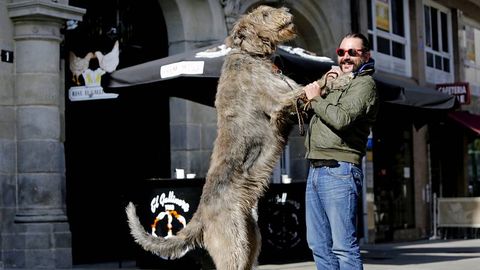 El hostelero Iván del Río se pasea por Vigo con Seldom, su espectacular mascota, el perro más grande del mundo