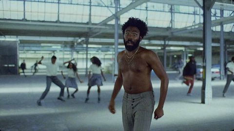 Glover también baila el Gwara Gwara, una danza sudafricana que popularizó Rihanna en la ceremonia de los Grammy. A continuación, el actor mata con una metralleta a un coro, un obvio paralelismo a la matanza de Charleston en la que un veinteañero asesinó a nueve personas. También aparecen unos chavales grabando móvil en mano. La letra dice: «Esto es una herramienta». Este marzo, agentes de policía dispararon siete veces contra un sospechoso que hablaba por teléfono y que confundieron con un arma. Solo eso. La normalización de las armas, tratadas como joyas; la vestimenta de Glover, muy parecida a la de un soldado confederado, el suicidio, el apocalipsis. Y todo en apenas cuatro minutos.