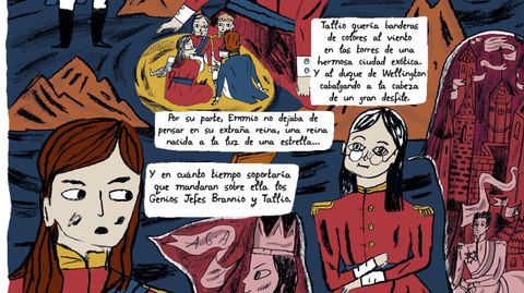 Al trío femenino, Greenberg suma al cuarto hermano, el único varón, Branwell. Angria y Gondal fueron los reinos que inventaron cuando eran niños. Así animaban sus días estos cuatro genios. ¿Su magia? Una imaginación rebosante que los llevó a crear la fantástica Ciudad de Cristal y variopintos personajes, algunos presentes en sus posteriores libros. Greenberg, una de las ilustradoras más reconocidas y premiadas en el Reino Unido, reconstruye esta insólita infancia en los páramos de Yorkshire a través de los textos que los cuatro escribieron de adolescentes, pero también de aportaciones de su propia cosecha.