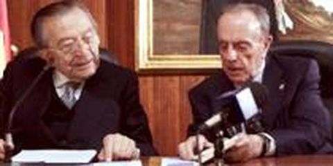 08 abr 2002 . Actualizado a las 07:00 h.Manuel Fraga fue el encargado de presentar ayer a todo un dinosaurio de la política europea, el ex-primer ministro italiano Gulio Andreotti, que dio una conferencia en la cátedra que lleva el nombre del presidente de la Xunta en la Complutense. Andreotti disertó sobre el ingreso de España en la UE. Y aprovechó para dar una puya a Aznar. Europa, dijo, debe hablar con voz propia en el conflicto árabe israelí.