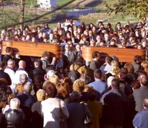 07 nov 2002 . Actualizado a las 06:00 h.Cerca de dos mil personas desbordaron ayer la iglesia y el cementerio parroquial de Santa Mariña de Cabral para dar el último adiós a Vicente Lemos Haya y a su mujer Rosa Gil Blanco, las dos víctimas mortales del atentado perpetrado el martes en Redondela. Los féretros, procedentes del tanatorio Vigomemorial, llegaron a las cinco de la tarde, en medio de un conmovedor silencio que sólo era roto por el repicar las campanas. Tras el funeral, los cuerpos recibieron sepultura poco antes de las seis de la tarde. Vicente y Rosa siempre dijeron que querían ser incinerados, pero la magistrada que instruye el caso no lo permitió por si fuese necesario realizar una segunda autopsia. Unidos por la tragedia Además de innumerables vecinos de las parroquias de Cabral y Vilar Infesta, participaron en la ceremonia miembros de las dos familias afectadas por las bombas trampa. Estaba también un nutrido grupo de amigos del matrimonio y compañeros de su hijo. Muchas de las decenas de coronas de flores que cubrían la entrada de la iglesia habían sido enviadas por los compañeros de trabajo de Vicente en Pescanova. Ver conmovidos incluso a sus subordinados demostraba que era un jefe especialmente querido en la factoría redondelana. También asistieron al sepelio los alcaldes de Vigo y Redondela, Lois Pérez Castrillo y Xaime Rei, respectivamente; el delegado del Gobierno en Galicia, Arsenio Fernández de Mesa; el subdelegado del Gobierno en Pontevedra, Alejandro Millán Mon; y el presidente y el director del Grupo Pescanova, Manuel Fernández de Sousa-Faro y Fernando Paz Andrade, respectivamente.