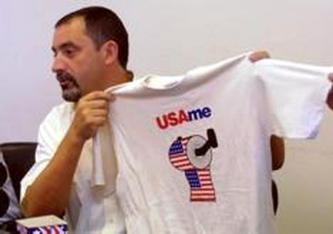 Crónica | Venta de camisetas contra la política norteamericana El Concello lanza una irreverente campaña de promoción de las barras y estrellas con la finalidad de recaudar fondos para una causa humanitaria