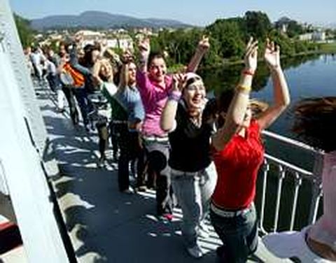 19 may 2005 . Actualizado a las 07:00 h.Tui y Valença trabajan desde hace años en la presentación de la primera candidatura conjunta de dos ciudades transfronterizas a Patrimonio de la Humanidad. Por ello, y porque el centenario puente que durante tanto tiempo significó frontera es ahora testigo de esa unión secular, ayer se transformó en un improvisado plató para grabar el videoclip Meniños Cantores . El viejo paso elevado sobre el Miño fue literalmente tomado por cerca de quinientos niños de Galicia y Portugal que, durante algo más de dos horas, cautivaron la atención de las cámaras con sus voces y coreografías. La emoción y la ilusión de los protagonistas no era para menos, ya que fueron los encargados de representar a una asociación, Ponte Nas Ondas, que ha conseguido llevar a la sede de la Unesco la primera candidatura mundial presentada por centros educativos de la Unión Europea. Desde entonces, en octubre del 2004 y, con la expectación puesta en que sus voces tengan la fuerza necesaria en París, su labor en defensa de la promoción de la cultura del eje atlántico, en la que llevan años trabajando, ha cogido un nuevo impulso y un objetivo muy claro: que la Unesco proclame la cultura gallego-portuguesa como Obra Maestra de la Humanidad. La grabación del disco-libro-vídeo, bajo el título Meniños Cantores es uno de los proyectos estrella de esta candidatura y una actividad pionera en el trabajo con el patrimonio inmaterial, realizada entre las escuelas de Galicia y del Norte de Portugal. Se trata de un recopilatorio elaborado por niños, jóvenes, profesores, músicos y artistas de ambas riberas del Miño y que será presentado oficialmente en el encuentro de escuelas asociadas a la Unesco que se celebrará en julio. Los protagonistas, siempre los niños, de veinte centros educativos, grabaron ayer el videoclip. Un tema escrito por Uxía Senlle, al que el ex componente de Siniestro Total, Segundo Grandío, le puso la música, con la coreografía del cantante del grupo Os Cempés fue el elegido para fundir el sentimiento que acompaña la candidatura. Bajo la dirección del estudio de grabación Casa de Tolos y con el apoyo de cámaras en tierra, un helicóptero y una embarcación, los pequeños cantores dieron rienda suelta a su imaginación. Versión karaoke El disco, con 32 temas, irá acompañado de un vídeo con un documental sobre las culturas y costumbres de la Eurorregión, los lugares de procedencia de las canciones, la localidad en la que está la escuela y sobre el centro educativo. Los que quieran aprenderse bien la lección tendrán también la versión karaoke. Pero el proyecto Meniños Cantores incluye un libro trilingüe con fotografías de los lugares y sectores implicados, así como los textos de los temas y referencias a su origen tradicional. Ponte Nas Ondas cuenta con la colaboración de las Consellerías de Cultura y Educación de Galicia así como de sus homónimas lusas y la Comunidad de Trabajo Galicia-Norte de Portugal, tanto para la elaboración del proyecto como para su difusión, a toda la península y a Brasil. El director de la asociación, Santiago Veloso, recordó ayer la trascendencia de esta especial candidatura destacando que «sería un galardón permanente para la cultura galaico portuguesa, un reconocimiento internacional para los dos países, que les proporcionaría un atractivo turístico igual o superior al del Xacobeo». Ahora, la bola está en el tejado de la Unesco, que se pronunciará el próximo mes de noviembre.