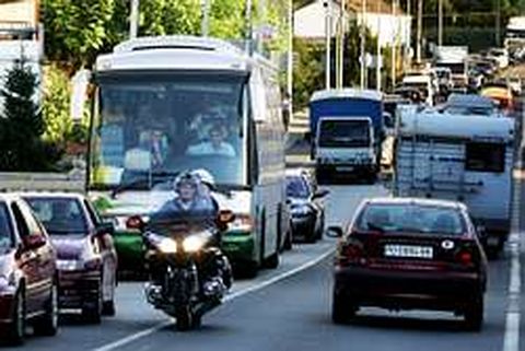 19 ago 2005 . Actualizado a las 07:00 h.El fuego estranguló ayer la arteria que comunica las dos principales ciudades de Galicia, A Coruña y Vigo. Y desveló, a un tiempo, las carencias que ofrece la red general de carreteras en el primer eje de crecimiento de la comunidad, el corredor atlántico, a la hora de dar respuesta a una emergencia cuando la AP 9 falla. Un incendio, que comenzó tímidamente en Pontecesures, hacia las cuatro de la tarde, fue ganando cuerpo, alentado por un fuerte viento del norte, hasta cubrir, tres horas después, un frente de cuatro kilómetros a lo largo de la autopista, en torno al punto kilométrico 97, en Valga. El caos desatado por el corte de la vía -fue ordenado a las siete por Tráfico y se mantuvo hasta las diez menos diez de la noche- acabó trasladándose a la carretera general. Primero en Padrón, un cruce de caminos incapaz de absorver la ingente circulación que Audasa desviaba como podía desde la Autopista del Atlántico. Al final, en zonas de circulación tan densa y mal articulada de por sí como O Salnés. El tramo más afectado comprendía casi veinte kilómetros, entre los peajes de Caldas y Padrón; desde ambos se intentó articular una alternativa. El cierre al tráfico, en ambos sentidos, y el abundante humo que atestaba el ambiente conferían a la calzada un aspecto fantasmagórico. De hecho, el motivo que forzó el cierre fue no tanto el fuego como la falta de visibilidad que provocaban las emanaciones. Quejas de los usuarios Prácticamente desde el primer momento, el centro de control de la autopista comenzó a recibir quejas de los usuarios de la vía. La mayoría se referían a la falta de señalización del problema en accesos tan importantes como Santiago. Los automovilistas, sin conocimiento previo del corte, se introducían en la vía para verse atrapados en colas de hasta veinte kilómetros y esperas de más de dos horas. La compañía que gestiona la AP 9 reaccionó mejor por lo que respecta al cobro de los peajes, que eliminó en los puntos más conflictivos, como Padrón, Caldas, Curro y Carracedo. Finalmente, la empresa decidió hacer retroceder desde Padrón a Milladoiro el desvío de la circulación que discurría hacia el sur. Era un intento por descongestionar las vías secundarias y sus propias calzadas, repletas de vehículos prácticamente inmovilizados en este tramo, de 18 kilómetros Todos los efectivos Mientras, en el monte, los equipos de extinción se batían el cobre para atajar un incendio que, por momentos, amenazó al núcleo de Cimadevila, en Valga. Todo estaba preparado para la evacuación, pero los vecinos optaron por echarse a la calle para luchar codo a codo con bomberos, miembros de cuadrillas y de agrupaciones de Protección Civil de media provincia de Pontevedra y la ría de Arousa. El siniestro, al que la Consellería do Medio Rural otorgó al máximo nivel de alerta, fue concentrando, a lo largo de la tarde, a la mayoría de los recursos de los que dispone el departamento autonómico en Pontevedra. Entre ellos, un helicóptero de extinción, dos aviones anfibios y un helicóptero de coordinación. Hacia las nueve y media de la noche, la lengua de fuego que barría los márgenes de la autopista se había reducido a doscientos metros, y los equipos de Audasa, que también se concentraban en la zona, pudieron cruzar por primera vez la línea de humo. «Queda traballo para moita noite», aseguraba un bombero anoche, ante los varios frentes que presentaban las llamas.