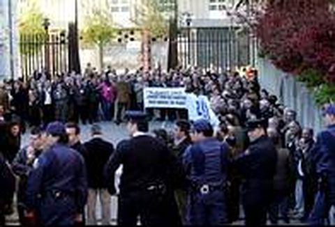 23 nov 2005 . Actualizado a las 06:00 h.?a presidenta del Parlamento gallego, la socialista Dolores Villarino, comparó ayer al grupo del PP con los militares golpistas del 23-F, como colofón a una polémica en escalada que arrancó a primera hora de la tarde cuando un grupo de 200 manifestantes, entre los que figuraban varios cargos públicos del PP, intentaron acceder al Pazo do Hórreo. Los diputados de la oposición, que ya habían abandonado sus escaños para ocupar plaza en la tribuna del público, optaron por salir de la Cámara al oír el insulto, para denunciar una actitud que no están dispuestos a consentir. La concatenación de jaleo y trifulcas arrancó poco antes de que el Parlamento reanudase por la tarde la sesión plenaria. La concentración de personas en la rúa do Hórreo hacía presagiar que la crispación política iba a subir varios grados, como finalmente ocurrió cuando los manifestantes, que mostraban pegatinas con el lema «Touriño esquece o rural», cruzaron la verja que rodea la sede parlamentaria, sin que la policía pudiera contenerlos. Una veintena de personas, además, accedieron como invitados a la tribuna de la Cámara para seguir un debate consagrado a analizar la suspensión de 247 obras de infraestructuras en las zonas rurales, ordenada por el Gobierno bipartito de la Xunta. La presidenta del Parlamento, Dolores Villarino, ordenó desalojarlos antes de comenzar la sesión: «Non vou permitir que a liberdade de expresión sexa cercenada por ninguén», argumentó la presidenta. Los diputados del PP, a excepción de dos viceportavoces, se marcharon en solidaridad, pasando a ocupar los sillones de la tribuna. Y cuando jalearon una intervención con aplausos recatados, Villarino bramó: «Ao que máis me recorda isto é ao 23-F», dijo en relación a la actitud del PP. En una multitudinaria rueda de prensa, a la que acudieron diputados, senadores y alcaldes populares, el portavoz adjunto Alberto Núñez Feijoo tildó de «antidemocrática» la actitud de Villarino. Es más, denunció que el popular Roberto Castro fue calificado de fascista por la vicepresidenta del Parlamento, Tereixa Paz, sin que la presidenta interviniese. «Este grupo vai estudar as accións que en dereito procedan», advirtió Feijoo, quien se negó también a acudir a la posterior junta de portavoces.