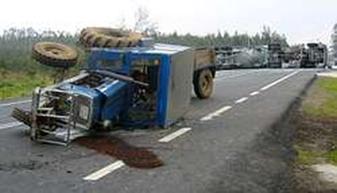 05 feb 2007 . Actualizado a las 06:00 h.La muerte ayer de dos personas en accidentes ocurridos en Vimianzo y O Pino (A Coruña) eleva a siete el número de víctimas mortales en las carreteras gallegas en los primeros cinco días del mes de febrero. En Vimianzo murió el chófer de un camión cisterna con hormigón en un accidente ocurrido en la AC-552, en Vilaseco, y aparentemente causado por un tractor, cuyo conductor, de 82 años, sólo sufrió algunas magulladuras. Al parecer, el tractor inició una maniobra para girar hacia una pista, ocupando parte de la carretera. El chófer del camión, que circulaba en el mismo sentido, en dirección a Cee, comenzó a frenar unos cuarenta metros antes, pero no pudo parar su vehículo y acabó golpeando al tractor, que volcó y quedó cruzado en la calzada. El camión también volcó finalmente sobre la carretera, y quedó atravesado, lo que impidió la circulación entre las diez de la mañana y la una de la tarde. El camionero, natural de Ponteceso y residente en Arteixo, se llamaba José Manuel Bermúdez y tenía 44 años. Era un transportista autónomo que llevaba hormigón para una empresa de Dumbría, según informó la compañía. El tractorista, José Pereira Fernández, de 82 años y vecino de Castrelo (Vimianzo), fue trasladado al hospital de Cee. Al parecer, no sufría heridas de gravedad. Para retirar el camión, un Scania con matrícula 3111 DXK, hubo que llevar a Vilaseco una grúa especial, lo que permitió abrir un carril al tráfico. Al lugar acudieron miembros de Protección Civil de Vimianzo, una uvi móvil y agentes de la Guardia Civil de Tráfico. Nada se pudo hacer por el camionero, que murió casi en el acto al recibir un fuerte golpe en la cabeza tras el vuelco de su vehículo. En O Pino murió Alfredo Calviño Franco, de 44 años y vecino de Bueu, en un siniestro ocurrido a las ocho de la mañana, según informaron los bomberos de Arzúa, en el kilómetro 87,700 de la N-547, en Amenal. Chocaron frontalmente un Audi A3 y una furgoneta Seat Inca. En el Audi viajaba María Isabel R. L., de Santiago y de 38 años, que sufrió heridas muy graves. La furgoneta, de la empresa Espina y Delfín, iba conducida por Rufino D.G., de 47 años y de Pontecesures, que sufrió heridas graves. Lo acompañaban José Ramón P.?G., de 54 años y de Brión (herido muy grave), y Alfredo Calviño, que pereció en el acto. Los heridos fueron trasladados al Hospital Clínico de Santiago. Al lugar acudieron bomberos de Arzúa y Santiago, y el Grumir de Arzúa, Guardia Civil y ambulancias del 061.