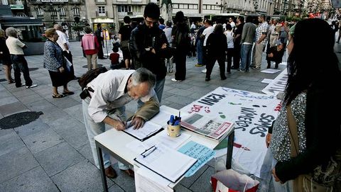 También recogieron firmas para pedir a las Cortes que debata el ideario del 15-M, una propuesta lanzada desde Vigo y que ha tenido eco en otras ciudades. Una asamblea en la farola de Urzaiz-Príncipe, a la que acudieron menos de cien personas, cerró los actos. A la manifestación del sábado acudieron más de 11.000. Las acampadas son descartadas en Vigo porque «fueron un medio en su día para reivindicar que el espacio público es público», dijo una organizadora.