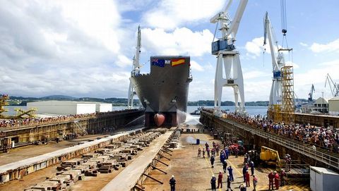 No obstante, ayer de nuevo Ferrol salvó con éxito el hito, bajo la atenta mirada de autoridades militares y civiles de Australia y España. De hecho, el jefe de la Marina de las antípodas, el vicealmirante Ray Griggs, arrojó algo de esperanza para los astilleros públicos al confirmar la intención de su Armada de comprar un buque logístico, que podría ser similar al Cantabria español, que reforzará las opciones de Navantia al desplazarse durante nueve meses a las antípodas. Griggs subrayó que el hecho de que los últimos navíos que se incorporarán a su flota lleven sistemas comunes con el Cantabria es un elemento que tomarán en cuenta en el concurso en el que, no obstante, también evaluarán otros modelos.