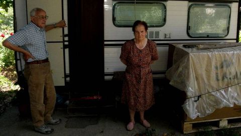 Jesús Vilela y Otilia Pereira, viven en Cadoalla, a tres kilómetros de Becerreá. Con el temblor de 5,2 en la escala Richter de mayo del 97 compraron una caravana, donde los cinco miembros de la familia estuvieron durmiendo durante tres meses. Aquel temblor causó algunos daños en la casa, que ya repararon, pero sobre todo les dejó tanto miedo en el cuerpo que estuvieron meses sin volver a sus camas. «Estivemos dous meses durmindo no 127 a miña muller e máis eu. Despois compramos a caravana e xa durmimos nela os cinco», explica Jesús. «Durmimos na caravana dende xullo ao 12 de setembro daquel ano», matiza el nieto, Manuel, con recuerdos aún muy frescos.