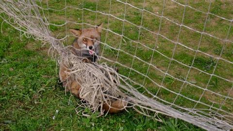 Al intentar liberarse, el raposo se enredó más y tuvo que ser rescatado por voluntarios de Protección Civil