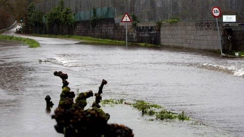 En Tomiño ha caído parte del alumbrado público encima de varios vehículos; entre Marín y Pontevedra ha quedado interrumpida la circulación en la carretera PO-11 por la subida de la marea, y en Ponteareas la crecida del río Tea ha provocado desbordamientos.