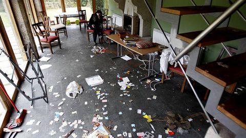 10 abr 2013 . Actualizado a las 22:26 h.La Guardia Civil de Negreira investiga las causas del enseñamiento vandálico en el que se convirtió en la madrugada del domingo lo que iba a ser la fiesta del 17 cumpleaños de una joven de Santiago, cuya madre alquiló la casa de turismo rural A Ribeira do Tambre, en la parroquia de Troitosende, en A Baña. El establecimiento, de ocho habitaciones, tiene capacidad para unas veinte personas.