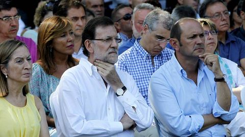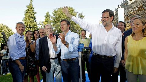 El acto que los populares realizaron en el castillo de Soutomaior estuvo rodeado de fuertes medidas de seguridad, con hasta cuatro filtros policiales y la exigencia de invitación, por primera vez en siete años, para acceder al recinto propiedad de la Diputacion de Pontevedra. Una treintena de preferentistas fue retenida a dos kilómetros del acto.