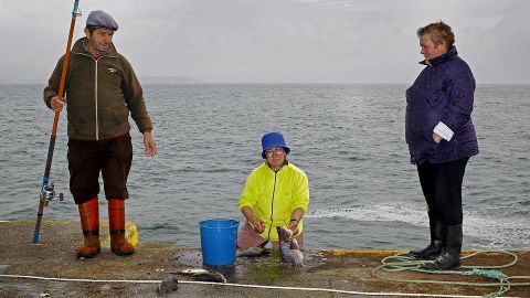 Cuando ayer atracó la lancha del parque, con un equipo de La Voz y de V Televisión, Cesáreo Pérez, su mujer Victoria López, y su cuñada Josefa López, estaban en el muelle pescando. El mar, bravo apenas unas horas antes, les había prodigado unas excelentes maragotas que descamaron allí mismo para echarlas en la sartén poco después.