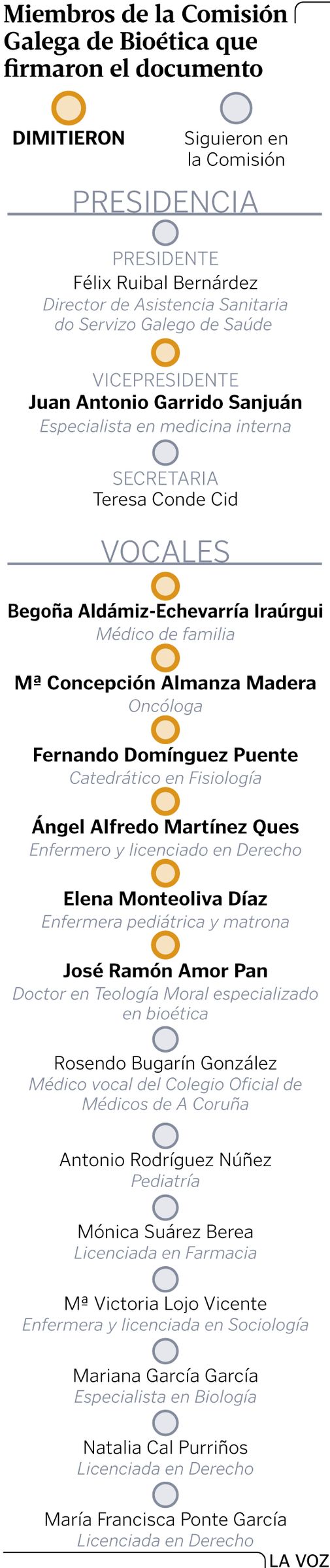 Dimiten dos de los miembros de la comisión por falta de independencia: el oncólogo Francisco Barón y el psicólogo Miguel Anxo García, ambos especialistas en el complejo hospitalario de Santiago. Jesús Martínez Carracedo dejó el comité por temas laborales.