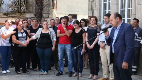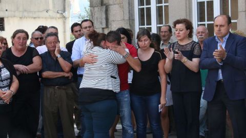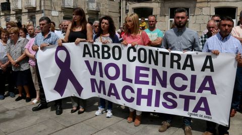 Cinco minutos de silencio abrieron la concentración de Arbo. Un silencio tan solo roto por los llantos de los familiares de los fallecidos, arropados por numerosos amigos y vecinos. Un largo y afectivo aplauso puso fin a este pequeño homenaje y dio paso a la lectura de un comunicado de la familia de Sergio Rodríguez Fernández. Fabiola Durán, amiga de la familia y vecina de Arbo, fue la encargada de trasladar las palabras de una familia rota por el dolor. «A familia de Sergio quere manifestar o seu absoluto rexeitamento ante un feito tan repugnante que acabou coa vida de dúas persoas inocentes». Durán iniciaba así un comunicado centrado en denunciar la violencia de aquellos «que se cren posuidores dunha posición dominante e que se consideran donos das vidas alleas». Se refería a Arturo Domínguez, en prisión desde el pasado lunes y presunto autor del crimen.