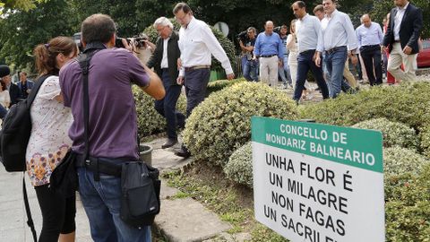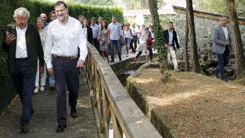 El presidente del Gobierno disfrutó de los atractivos de la villla y así, tras firmar en el libro de honor del Ayuntamiento Rajoy recorrió a pie la travesía principal y la senda que bordea el río Tea. Lo hizo acompañado por un grupo nutrido de turistas que le saludaban entusiasmados y se querían fotografíar con él. «Somos de Bilbao», le advertía una señora. «Yo soy de Madrid», añadía otra mientras se sucedían los enfoques desde de los móviles. El alcalde de Mondariz, José Antonio Lorenzo, viejo amigo de Rajoy, no podía ocultar su satisfacción porque el pistoletazo de salida de la precampaña se diese en su municipio y se proyectase la imagen de la villa.