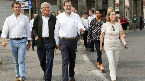 Junto al dirigente popular caminaba el presidente de la Xunta, Alberto Núñez Feijoo, muy preocupado con los fuegos, la ministra Ana Pastor, recién llegada de Egipto y con ganas de relajarse en Sanxenxo a partir del día 17. No faltaron a la cita Rafael Louzán, presidente provincial del partido, ni los alcaldes del PP en O Condado y A Paradanta. Tampoco quiso perderse la visita la directora de Turismo, Nava Castro.