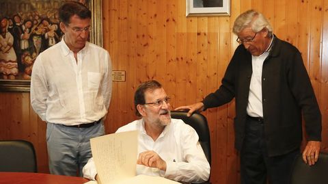Por la calle, el alcalde le iba explicando a Rajoy anécdotas del pueblo. Hasta que llegaron a la fuente de la Gándara, donde el agua huele a huevos podridos pero es muy saludable. Rajoy se la bebió. Un trago que había que superar, como la crisis. Luego tocó la sesión de trabajo con alcaldes y dirigentes, incluido el secretario, Alfonso Rueda. Fue una hora de reunión «para ir trabajando para las elecciones generales», aseguró Rajoy.