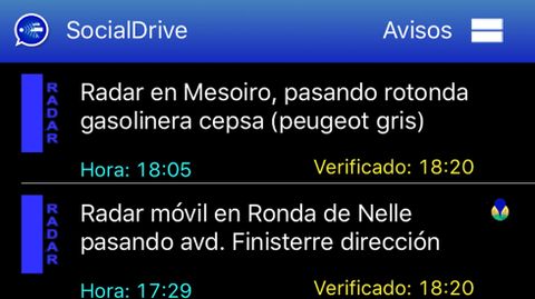 El funcionamiento de este tipo de aplicaciones es sencillo. Cuando un conductor que haya descargado la aplicación y que sea usuario activo observa un radar o un control policial lo comunica mediante el móvil. En el mensaje indica la hora y todos los datos que ayuden a identificar el lugar. «Control en la rotonda de la casa del mar, al salir del puerto», es uno de los mensajes vistos ayer por la tarde y que aparece en la captura reproducida en este página. La hora de la comunicación, las 16.30, y la verificación, las 17.24. Como ese, se reciben cientos de mensajes cada día en la aplicación, cuyos usuarios también informan de accidentes, retenciones y otro tipo de incidencias.
