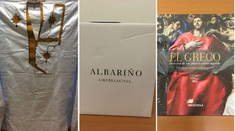 En la lista de presentes puede encontrarse de todo, como en botica. Corbatas, libros, cajas de albariño, un traje típico y un bastón de mando saharauis, una botella de vino de Oporto, un bolígrafo de la marca Cross, un óleo del pintor cangués Raúl Veloso, una lámina cuyo autor no consta, un cuadro del artista tudense Juan Valcárcel, una cámara de fotos, un escudo náutico, figuras de cerámica fina, varios lotes de comestibles... Y muchas cestas de Navidad. De estas últimas, tres han sido donadas a albergues para personas sin recursos, dos a sendos bancos de alimentos y otra a Cáritas.