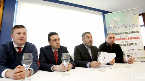 02 abr 2016 . Actualizado a las 05:00 h.Los guardias civiles cobran hasta un 35 % menos que otras policías, como las autonómicas de Cataluña y Euskadi, y que muchos cuerpos municipales. Un agravio que puede representar diferencias de hasta 600 euros al mes y que ha motivado que cinco asociaciones del instituto armado lancen una plataforma ciudadana que ayer se presentó en Galicia. Bajo el nombre de No somos menos la entidad pide a los ciudadanos apoyo para reclamar una equiparación salarial que consideran «de justicia por la alta valoración que tiene la institución», afirma el capitán Miguel Soldán Lema, delegado en la comunidad de la Unión de Oficiales de la Guardia Civil.
