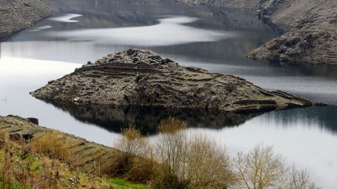 Ni del castro ni del castillo quedan apenas rastros visibles. Eso sí, probablemente la piedra de aquellas construcciones fuese aprovechada en su momento para cimentar los bancales con los que los lugareños sembraron de viñas este tramo de la ribera del Miño. Antes de los embalses no quedaba en esa zona ni un metro cuadrado sin cultivar. Medio siglo después, las terrazas siguen curiosamente en pie, igual que la traza de las pequeñas bodegas de piedra que salpicaban las viñas y que fueron parcialmente derruidas antes del llenado del embalse.