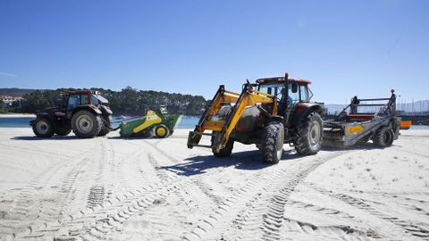 O Morrazo, O Salnés y Poio. Los trabajos de limpieza de los arenales de Cangas se iniciaron el martes, sobre todo, en Rodeira. En Moaña tienen programado limpiar esta semana la céntrica playa de A Xunqueira que, hasta hace pocos días, era una de las grandes perjudicadas por la suciedad. En Marín, se están mejorando los arenales y el vial de playas y en Bueu, la arena se extenderá en A Banda do Río y en Area de Bon, mientras que en el resto se acometerá limpieza. Los arenales de Poio se limpiaron ya hace un par de semanas. En Sanxenxo también llevan días limpiando y mejorando el entorno costero. En general, los concellos de esta zona priorizan el estado óptimo de las playas urbanas y dejan en un segundo plano las más expuestas todavía a los temporales de primavera. En O Grove, empezaron esta semana con las tareas de limpieza. Los trabajos se complican en A Lanzada, por la presencia del ave chorlitejo, que obliga a desarrollar la limpieza con el apoyo de técnicos de Medio Ambiente. En A Illa y Vilanova, también tienen sus playas a punto.