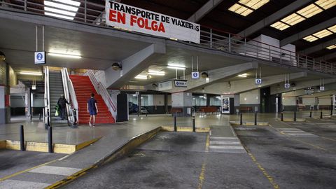 La huelga volvió a dejar vacíos los andenes de las estaciones de las principales ciudades gallegas. Apenas salieron vehículos, y algunos que debían entrar dejaban fuera del recinto a los viajeros para evitar problemas.