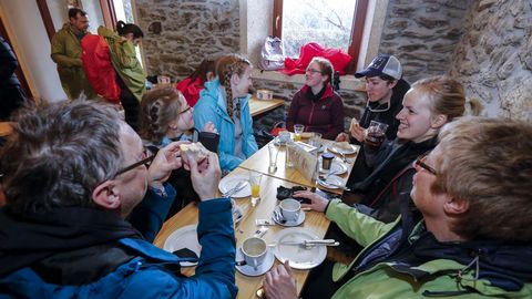 Entre sus clientes más madrugadores estaban aquella profesora y sus escolares. Lisa Beisenköetter hizo el Camino desde Francia hace dos años y medio y ahí vio a un grupo de maestros y estudiantes. Ella estaba en su fase de formación profesional y pensó: «Vale, yo tengo que hacer esto algún día con mis alumnos».