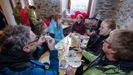 Son las 8.30 horas, y los peregrinos Fernando Márquez y Fernando Mambrona salen de desayunar frente al Ayuntamiento de Palas. Durmieron en el albergue de la Xunta, que aún conserva el logotipo del Pelegrín del Xacobeo 93. Esa mañana, hubo un apagón y se vistieron a oscuras. Hacen el Camino Primitivo, que confluye en esta villa, mientras que el del Norte sale en Melide. La pasada tarde los pilló la borrasca en el sendero primitivo, que se inundó, y se desviaron a ciegas por una carretera hasta Palas. Ellos prefieren salir desde Oviedo para disfrutar de la tranquilidad de sentarse en una terraza. Al Camino Francés lo tachan de «destino vacacional». Márquez hizo el del Norte en bicicleta, la Ruta de la Plata y el Francés dos veces, saliendo de Somport, a plazos. «Cambias de estar todo el día en el trabajo y conoces a otra gente», añade. «Vemos este verde y alucinamos», resalta Mambrona.