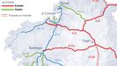 Pero además de sumar en total 887 kilómetros que podrían quedar sujetos al pago de peaje, por su carácter periférico Galicia quedaría cercada por ese tipo de cobros en sus salidas hacia el resto de España. Así ocurría en los trayectos hacia la cornisa cantábrica, para acceder a la frontera con Francia, la ruta de la Plata y, sobre todo, a lo largo de la A-6 y la A-52 para llegar desde el norte y sur de la comunidad a Madrid. Para transitar por Portugal, todas sus autovías cuentan ya desde el 2010 con peajes de cobro automático.