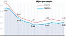 Dos es el número de hijos que las españolas consideran ideal para formar su familia. Pero esta cifra no se registra desde 1981, en Galicia desde un año antes. El INE dio a conocer ayer la encuesta de fecundidad, que revela las razones por las que la natalidad, lejos de repuntar, va cada vez a menos, como puedes comprobar en este gráfico. Las gallegas de hoy tienen un hijo de media, y no logran tener dos a causa del trabajo y sus rentas. Y demandan más y mejor conciliación.
