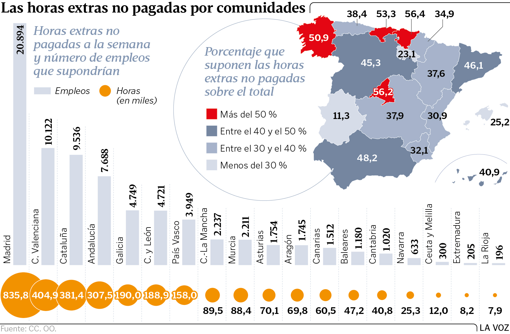 De la familia, al trabajo. Te contamos la última reforma de la legislación laboral que ultima el Gobierno y que obligará a todas las empresas a controlar las horas de trabajo de su personal, con el fin de que no se produzcan abusos. Los sindicatos piden que se aplique «en breve», la patronal se remite al diálogo social. Puedes ver aquí el mapa de las horas extras no pagadas por comunidades.