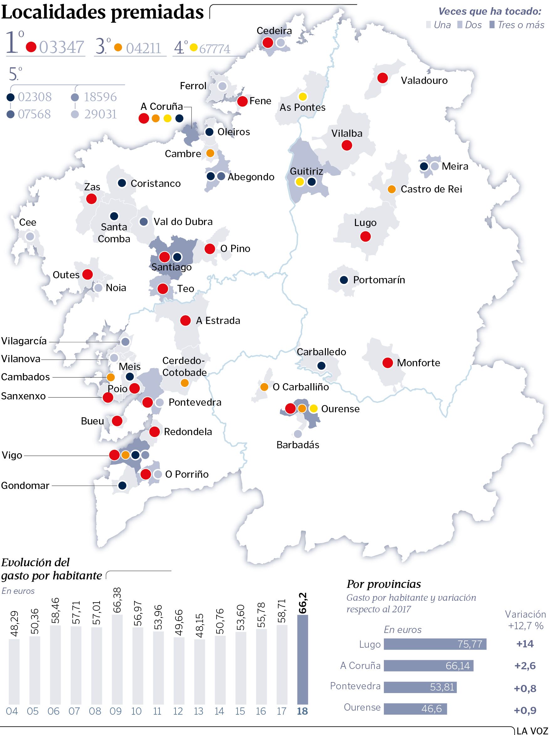 El gordo de Navidad se hizo notar en 21 concellos gallegos, pero la recaudación, 25 millones, está lejos de un año histórico