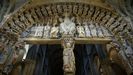 Lo mismo sucede en Santiago. Los visitantes que pasen estos días por la ciudad se quedarán sin ver el pórtico de Gloria, ahora acotado. La catedral ha colgado el cartel de completo para las visitas guiadas, que en la jornada de hoy se desarrollarán en ocho turnos entre las 9 de la mañana y las 6 de la tarde. Y el lleno seguirá en los próximos días. De hecho, en la tarde de ayer solo era posible encontrar tiques para participar en una de las visitas el próximo miércoles.