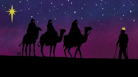 Al menos don Juan Carlos podría aclararles si España sigue siendo un reino como los suyos, pero tampoco obtienen una respuesta nítida del patriarca que vive su otoño. Lo más aconsejable es que visiten a Felipe VI, vayan a ver al presidente, digno sucesor de Pilatos en la pandemia, y saluden al vicepresidente guardando para esta ocasión las coronas, cetros, capas de armiño y demás distintivos de la realeza; presentándose simplemente como ciudadanos refugiados que okupan el trono de antiguas castas gobernantes. Tiempos aquellos en los que bastaba con llegar a cada lugar en las carrozas y repartir con discreción los regalos sin ayuda de Amazon. Ahora se precisa más diplomacia que con Herodes y no es suficiente con guiarse por la estrella; hay que tener a mano BOE y DOG por eso de las cambiantes normativas. ¿Por qué no me lleváis con vosotros?, suplicó el emérito. Sois errantes como yo. O puede quedarse aquí Melchor y yo suplantarlo en la cabalgata. Le dijeron que los niños, monárquicos por naturaleza, se darían cuenta de la impostura. Don Juan Carlos se despidió con un consejo: cuidado con Corinna.