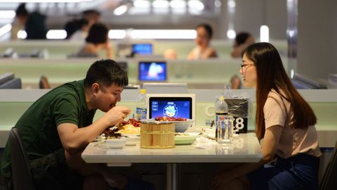 En un restaurante futurista de Shanghái, un pequeño robot avanza hasta la mesa, levanta la tapa de plexiglás mostrando un plato de cangrejos y dice con voz mecánica: «¡Buen provecho!». Aquí los autómatas han sustituido a los camareros.
