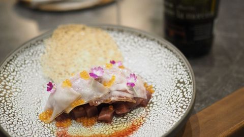Caminamos hasta la calle de la Barrera, un clásico de la gastronomía coruñesa. Allí está Intenso, la opción más “canalla-juvenil”, donde proponen platos para compartir en los que mezclar los ingredientes, “casi con las manos”, puntualiza Álvaro.