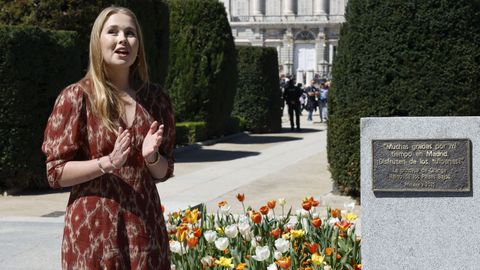08 abr 2025 . Actualizado a las 10:57 h.La princesa Amalia de Holanda inauguró una placa conmemorativa en un nuevo jardín de tulipanes en Madrid, situado en la Plaza de Oriente y que donó a la ciudad como gesto de agradecimiento por la hospitalidad recibida durante su estancia en la capital española en un período «excepcional». Se refiere a cuando fue gravemente amenazada por la mafia.